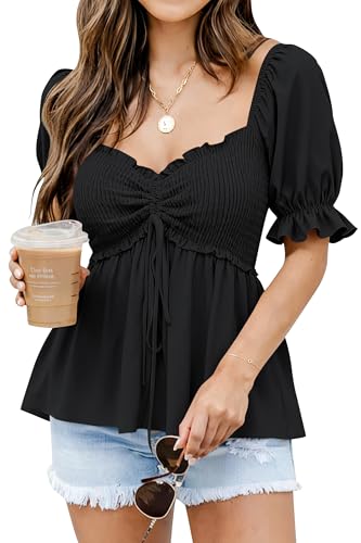 Poetsky Puff Sleeve Peplum Top for Chic Spring Outfits